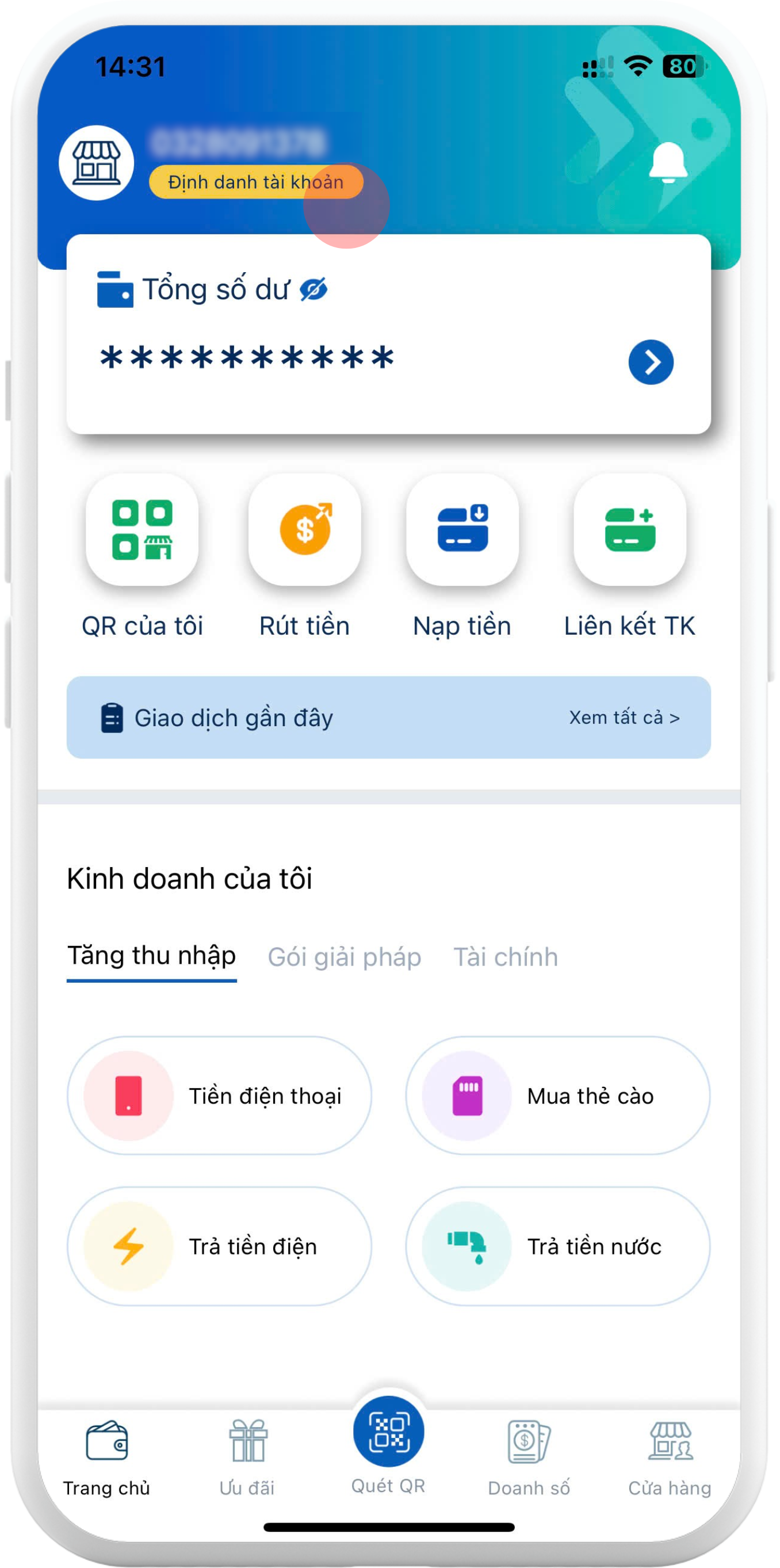 Bước 2: Thực hiện định danh theo hướng dẫn tại mục “Quản lí Ví và Tài khoản” > “Hướng dẫn cập nhật thông tin định danh Khách hàng (KYC) bằng chứng minh nhân dân/căn cước công dân”