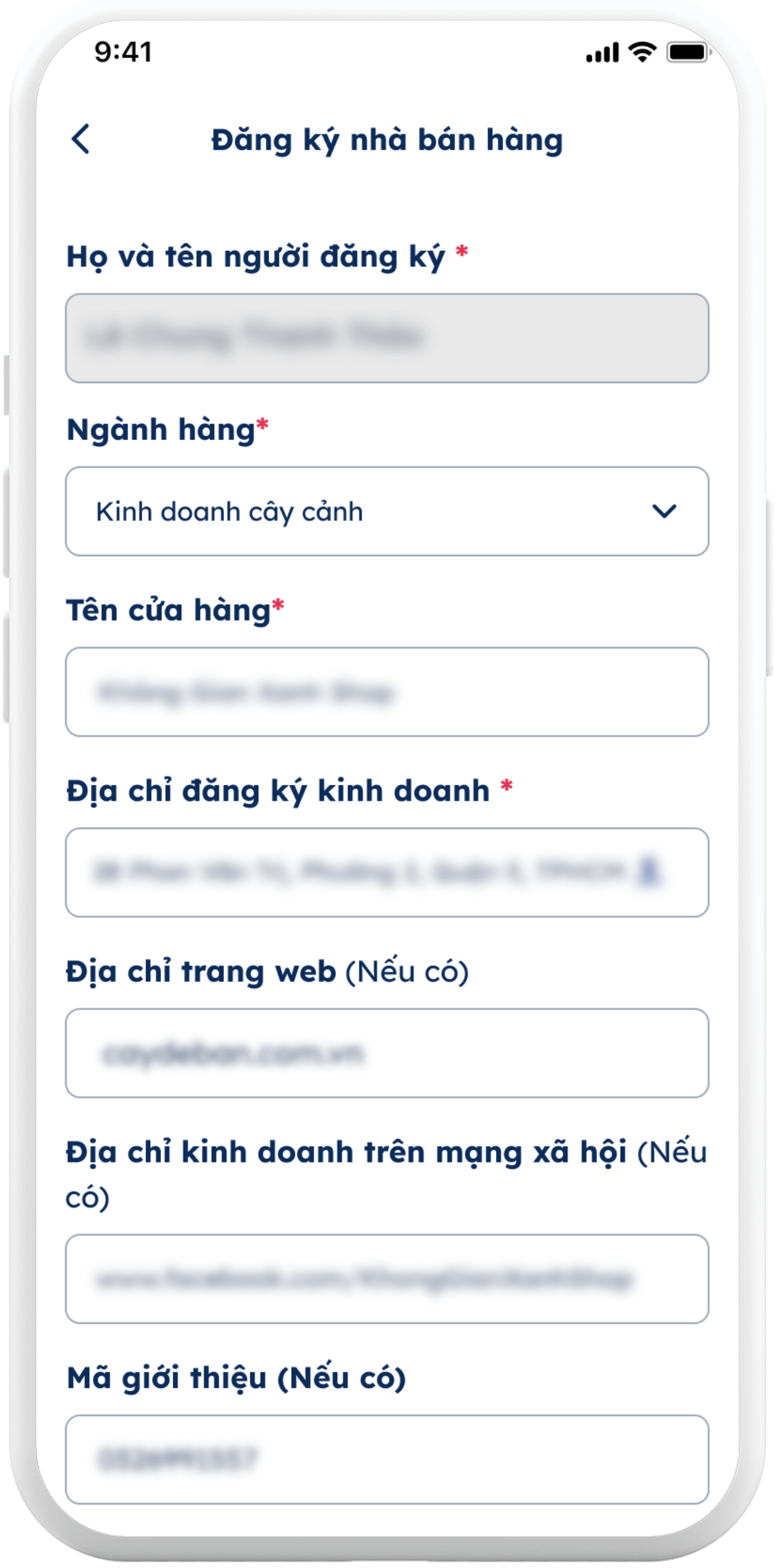 Điền các thông tin được yêu cầu để đăng ký Nhà bán hàng