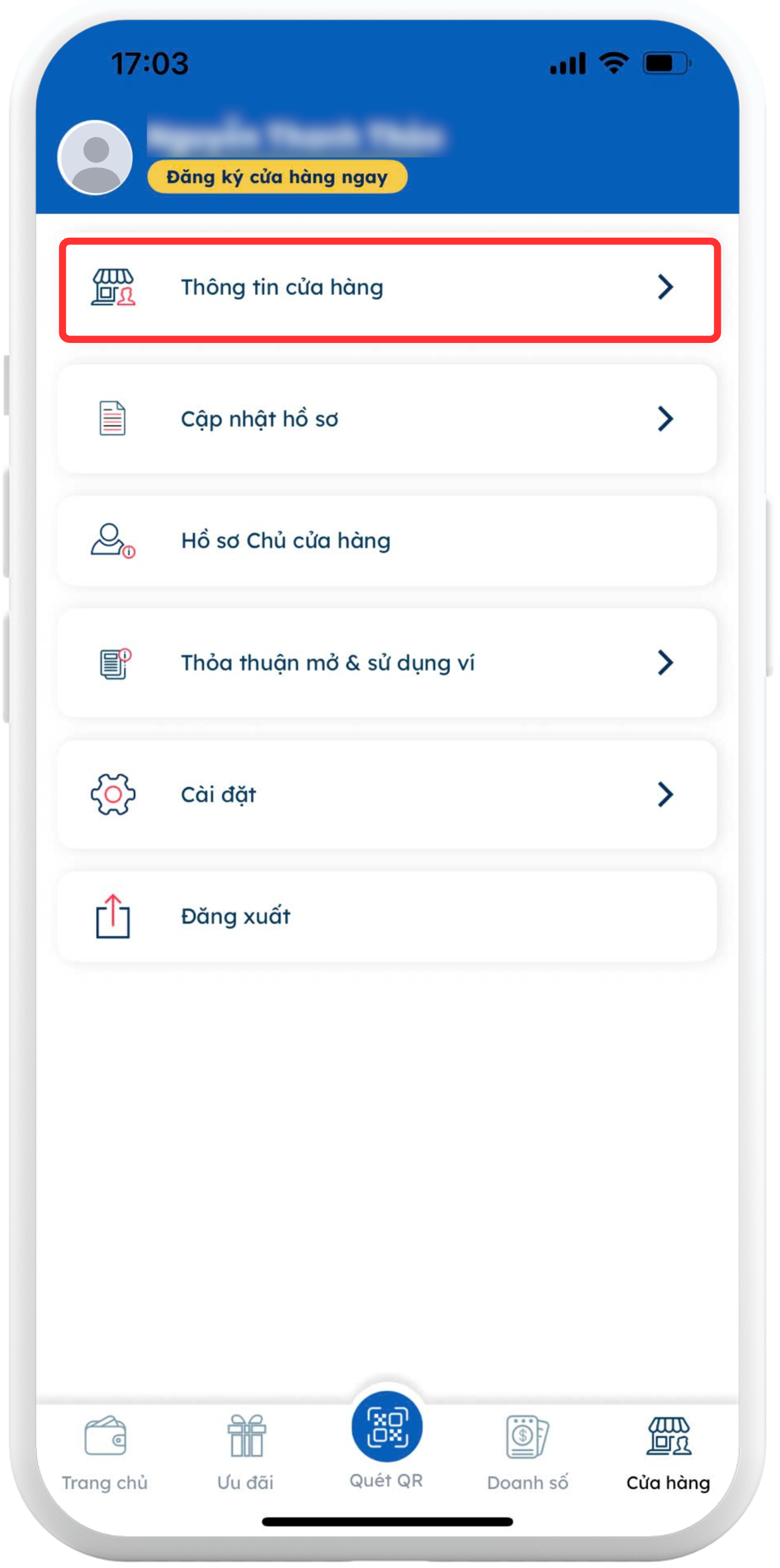 Tiếp tục nhấn "Thông tin cửa hàng"