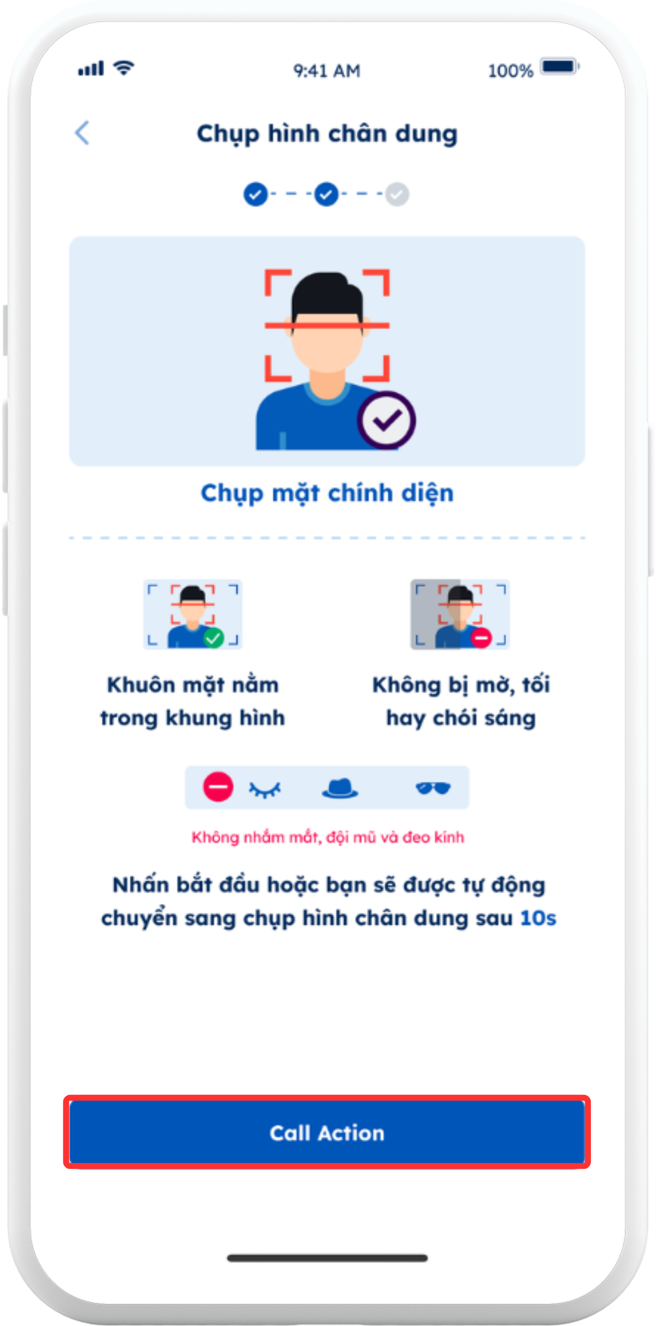 Nhấn "Call Action" để chụp hình chân dung