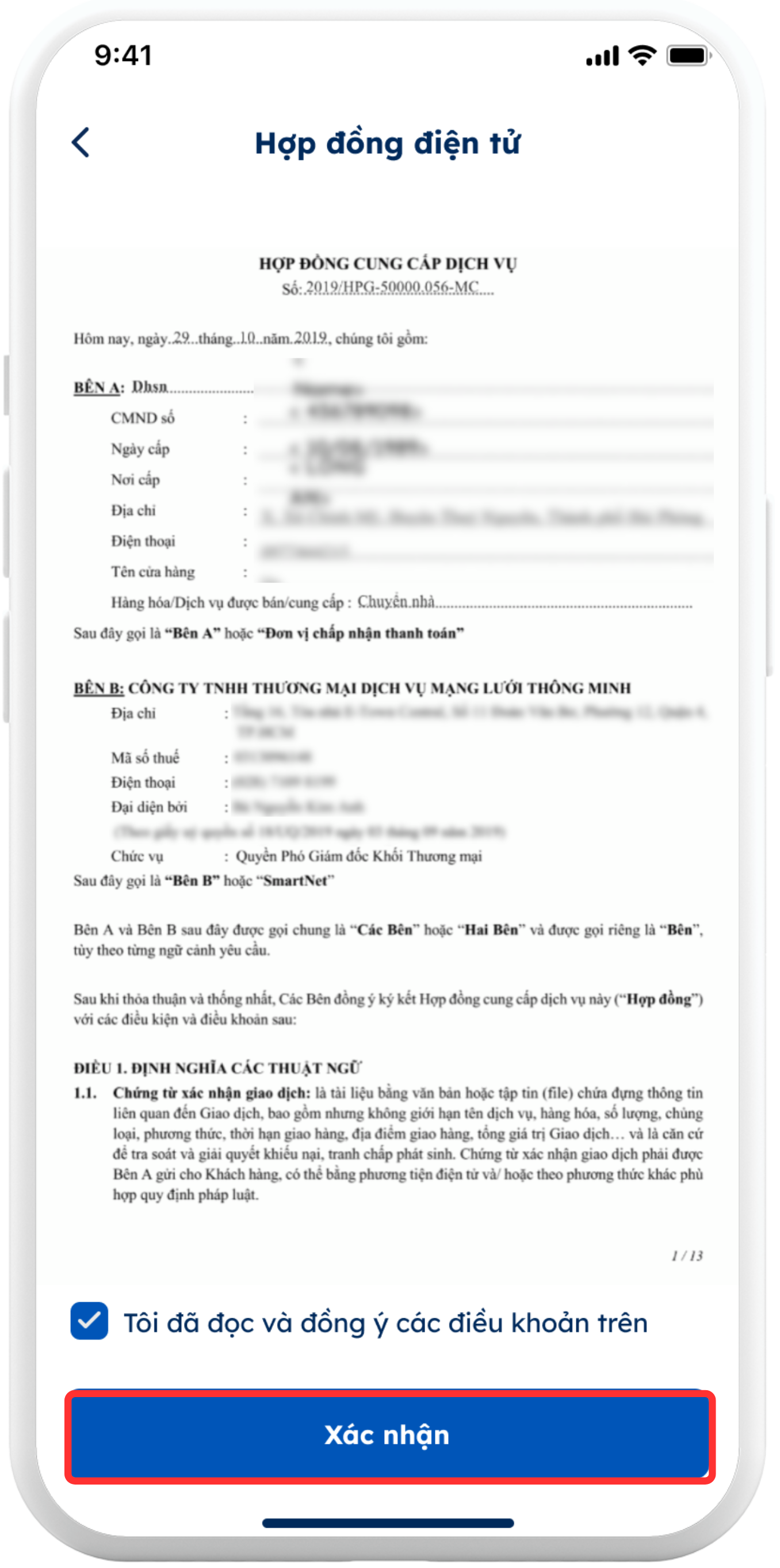 Bước 8: Ký hợp đồng điện tử để xác nhận đồng ý hợp tác với SmartPay và đồng ý với các điều kiện, điều khoản được nêu trong hợp đồng