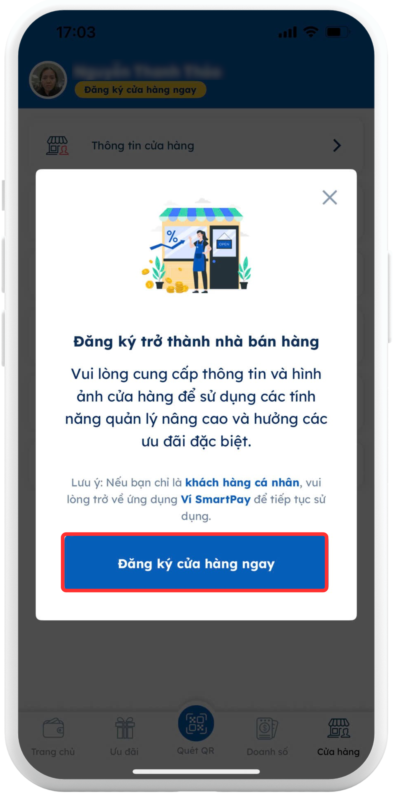 Nhấn "Đăng ký cửa hàng ngay"